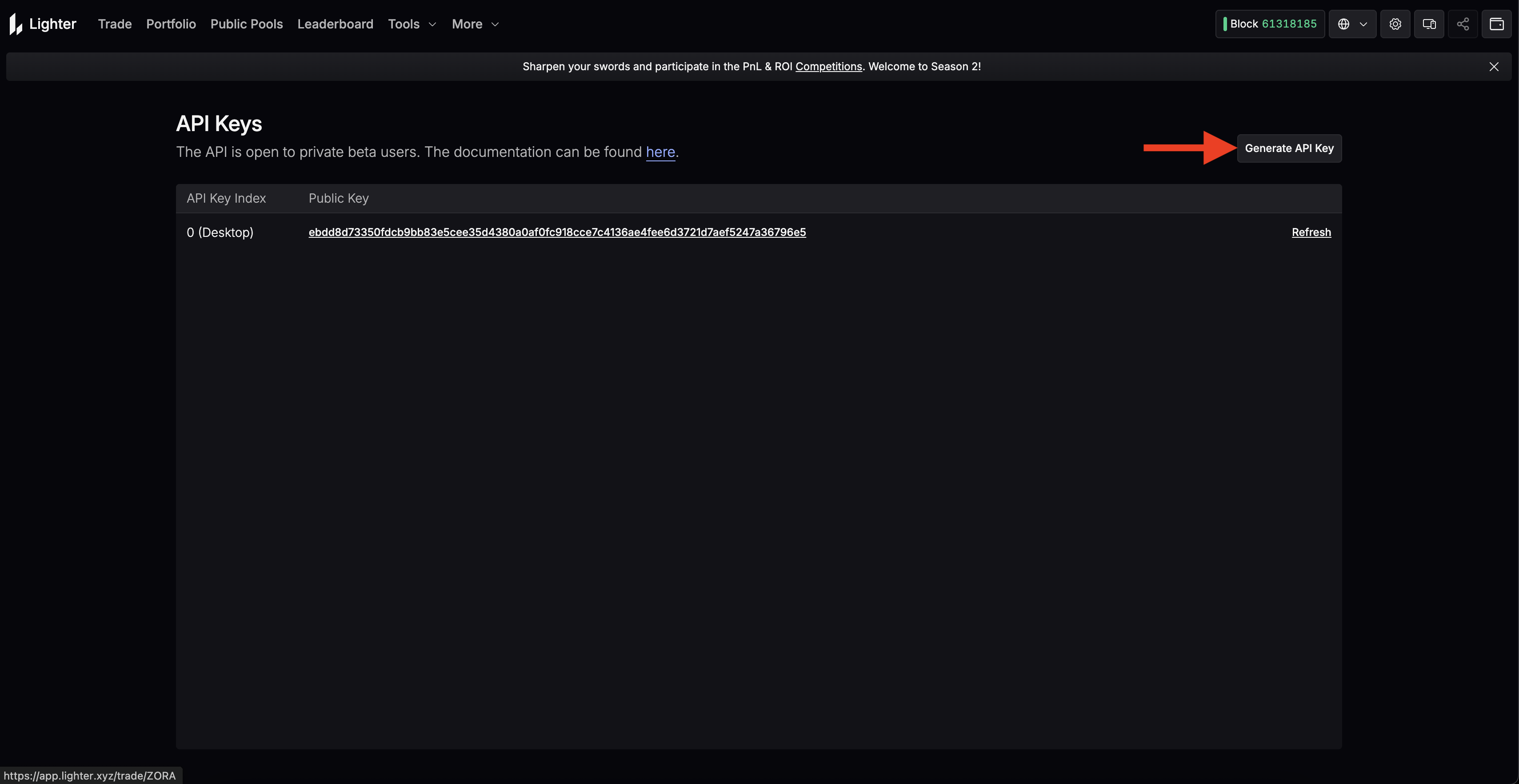 1. Navigate to Lighter application at <https://app.lighter.xyz/>
