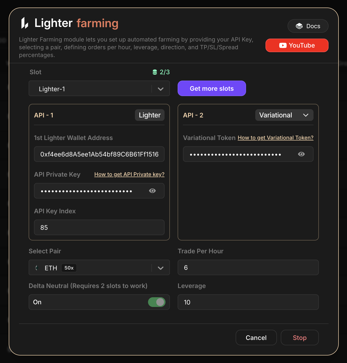 ⚠️ **Important**: Delta Neutral requires 2 slots to work properly